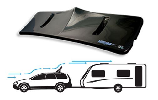 The Aeroplus is fitted to a horizontal roof rail (i.e rail that runs along the width of your vehicle) on your cars roof. This is done with two clamps that are secured with two hand tightened knobs. As you drive, it directs the air over the roof top of your caravan and reduces drag and improves fuel economy. It will fit most popular brands of roof racks such as Rola, Rhino and Thule (providing that the rail is not wider than 75mm)