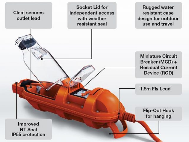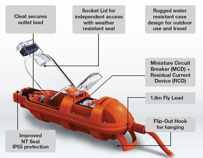 Ampfibian allows for the safe and legal connection of a 15A load (e.g. caravan) to a standard 10A domestic powerpoint, protecting the domestic power supply from overloading. Ampfibian also includes an earth leakage device (RCD) safety switch which will protect people from potential electric shock through faulty wiring or appliances