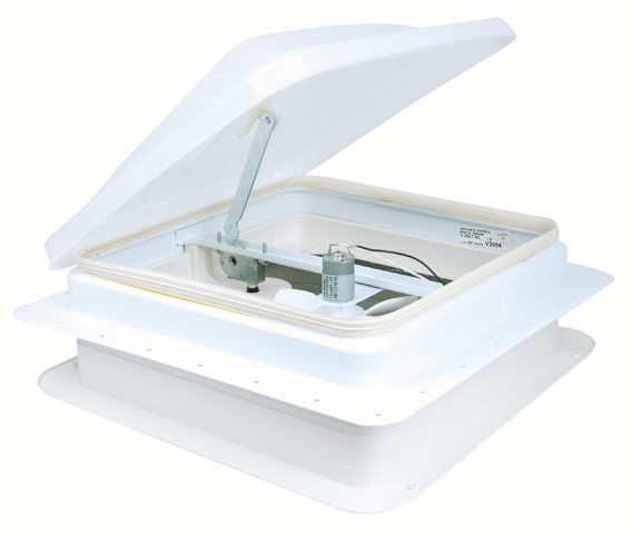 It also has extra strong galvanized steel roof flanges in a painted white finish and mounts onto the roof of your RV with screws.